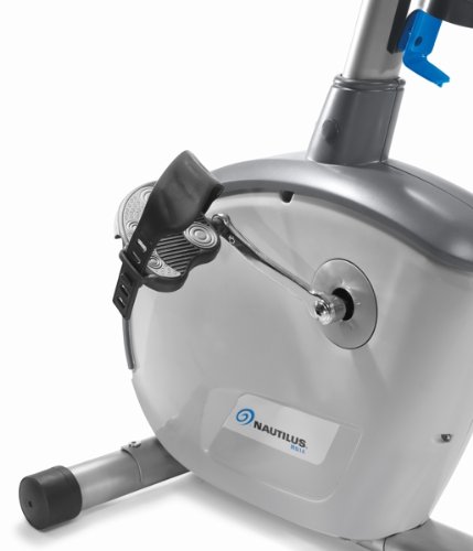 Save money on monthly gym fees and get in shape with the compact, comfortable Nautilus R514 recumbent exercise bike, which enables you to ride longer and harder with its biomechanically-correct design and comfort features, enhanced programming, and integrated Polar heart rate monitoring system. The Nautilus R514 recumbent exercise bike for the home. Features and Specifications: 7 profile courses–variety to help keep you motivated for the results you want 4 Polar heart rate programs, with telemetry, grip and chest belt (included). Polar is the premier brand of heart rate monitoring and fitness assessment–a perfect complement to Nautilus equipment. 2 programmable user profiles to customize your own courses and track your progress Electronically controlled magnetic resistance system for a smooth and efficient workout Blue backlit LCD display with an easy to read console Powerful fan, and multi-point seat and console adjustments–all biomechanically designed and inspired by the Nautilus equipment you see in a gym Convenient step-through design and adjustable lumbar support for comfortable and ergonomically correct positioning Oversized deluxe pedals, water bottle holder and magazine rack Integrated gear basket stores your towels, magazines or other accessories 20-pound flywheel Eddy Current Brake (ECB) resistance system Transport wheels Switchable from miles to kilometers (KM) Maximum user weight: 300 pounds The R514′s exercise console (see larger image). The R514 offers oversized deluxe pedals. Manufacturer’s Warranty 10 years on the frame, 2 years on parts, 1 year on electronics, 6 months on wear parts, 6 months on labor Compare These Recumbent Exercise Bikes Schwinn A20 Schwinn 220 (2009) Schwinn 240 Schwinn 250 Nautilus R514 Number of Programs 7 10 17 17 16 Workout Programs 1 Manual, 6 Profile 6 Profile, 1 Custom, Quick Start, Fitness Test, Results Mode 8 Profile, 2 Custom, Quick Start, Fitness Test, 3 Heart Rate Controlled, Distance Goal, Results Mode 8 Profiles, Quick Start, Distance Goal, 2 Custom, 3 Heart Rate Controlled, Fitness Test, Results Mode 6 Profile, Quick Start, 2 Custom, 3 Heart Rate Controlled, Fitness Test, Distance Goal, Calorie Goal, Results Mode Performance Tracking No No Schwinn Advantage™ Schwinn Advantage™ No Polar® Heart Rate System No No No Yes Yes Heart Rate contact contact telemetry enabled & contact telemetry enabled & contact telemetry enabled (with chest strap) & contact Display Type LCD extra large LCD extra large black backlit LCD with multi-colored brickyard extra large black backlit LCD with multi-colored brickyard extra large blue backlit LCD Resistance Levels 8 16 16 16 16 Other Features magnetic eddy current brake, extra large console, fan, reading rack, water bottle holder, two position lumbar support, powered by battery or AC adaptor (sold separately) compatible, transport wheels, rear stabilizer frame levelers, switchable from miles to kilometers magnetic eddy current brake, thickly padded seat with side bolsters and lumbar support, reading rack, rear stabilizer frame levelers, transport wheels, switchable from miles to kilometers, AC adaptor included magnetic eddy current brake, console angle adjustability, thickly padded seat with side bolsters and lumbar support, storage basket, reading rack, water bottle holder, rear stabilizer frame levelers, transport wheels, switchable from miles to kilometers, oversized deluxe pedals eddy current brake, console angle adjustability, thickly padded seat with side bolsters and lumbar support, blower fan, speakers, storage basket, reading rack, water bottle holder, rear stabilizer frame levelers, transport wheels, adjustable handlebars, switchable from miles to kilometers, oversized deluxe pedals magnetic eddy current brake, console angle adjustability, thickly padded seat with side bolsters and lumbar support, blower fan, reading rack, water bottle holder, storage basket, rear stabilizer frame levelers, transport wheels, switchable from miles to kilometers, oversized deluxe pedals Dimensions (L x W x H) 61 x 17 x 41 inches 56 x 25 x 38 inches 63 x 25 x 46 inches 67 x 25 x 26 inches 67 x 25 x 52 inches Product Weight 60 pounds 97 pounds 117 pounds 117 pounds 119 pounds Warranty Frame: 2 years, Mechanical & Electric: 6 months, Wear Parts: 30 days Frame: 5 years, Mechanical & Electric: 1 year, Wear Parts: 90 days Frame: 5 years, Mechanical & Electric: 1 year, Wear Parts: 90 days Frame: 5 years, Mechanical & Electric: 1 year, Wear Parts: 90 days Frame: 10 years, Mechanical: 2 years, Electric: 1 year, Wear Parts: 6 months Max. User Weight 275 pounds 275 pounds 275 pounds 275 pounds 300 pounds